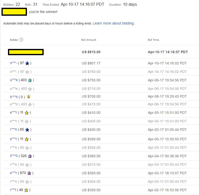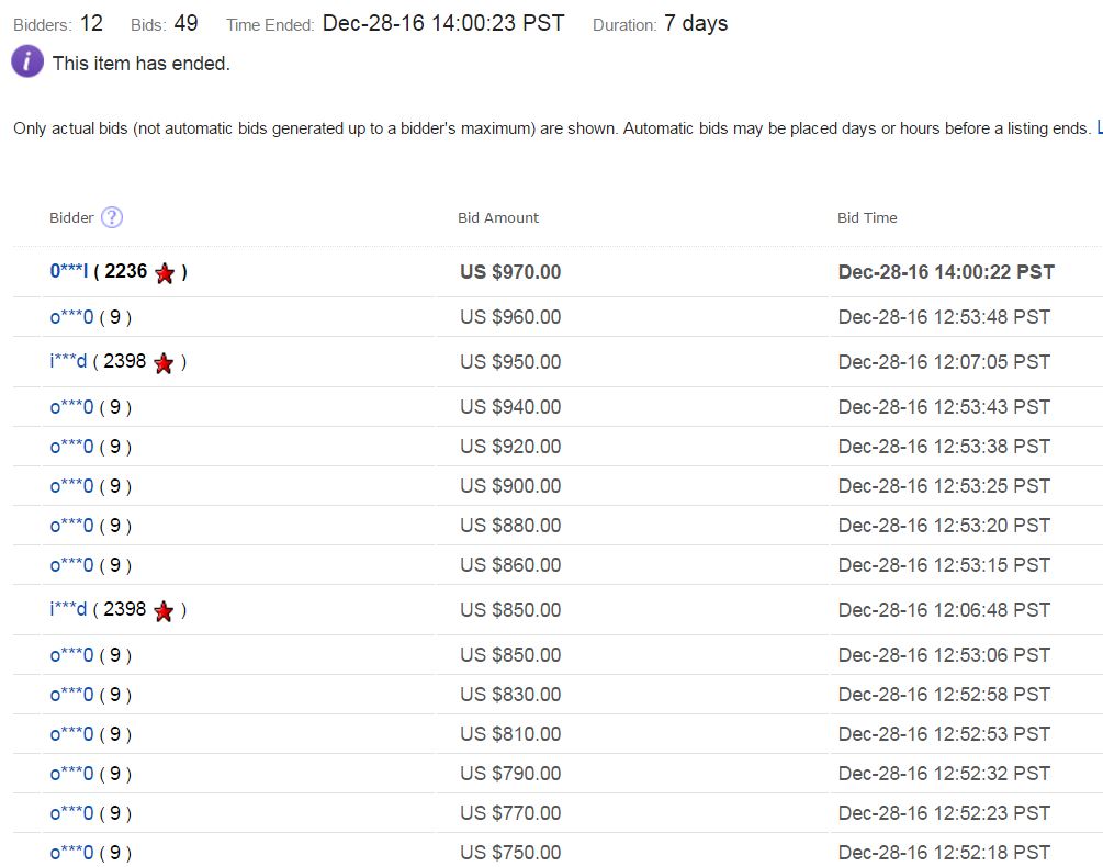 Aug mon 01, 2016 8:30 pm. Aug mon 01, 2016 8:30 pm. Easy way to spot a shill bidder.